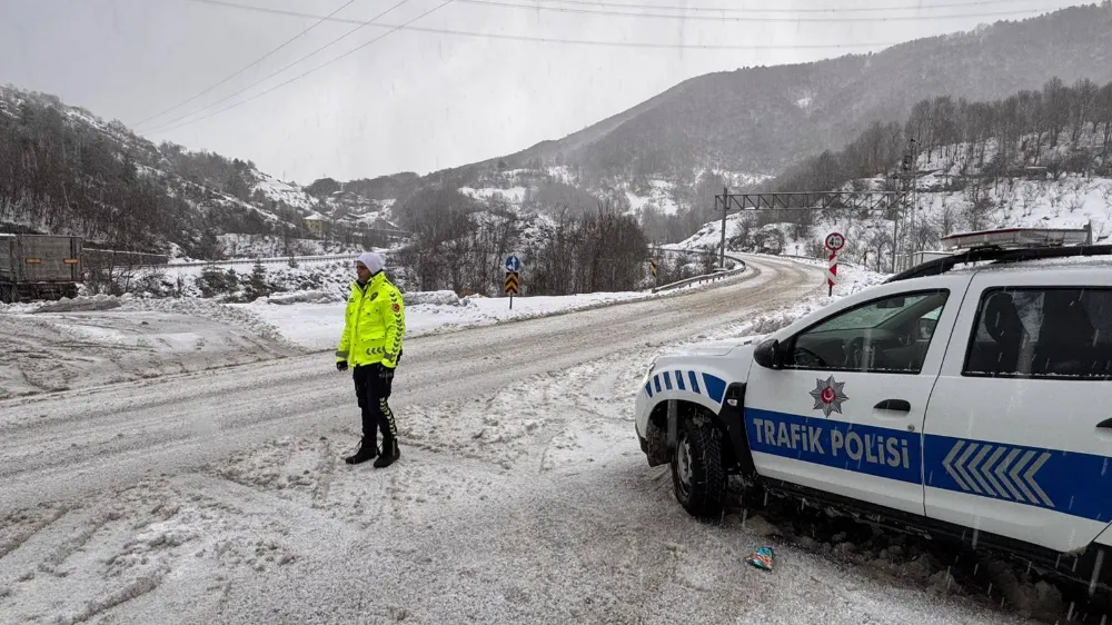 Zonguldak – Ereğli: Güzergâhımızda yoğun kar yağışı mevcut, yolumuz uzun araçlara kapalı, diğer araçlara açık.