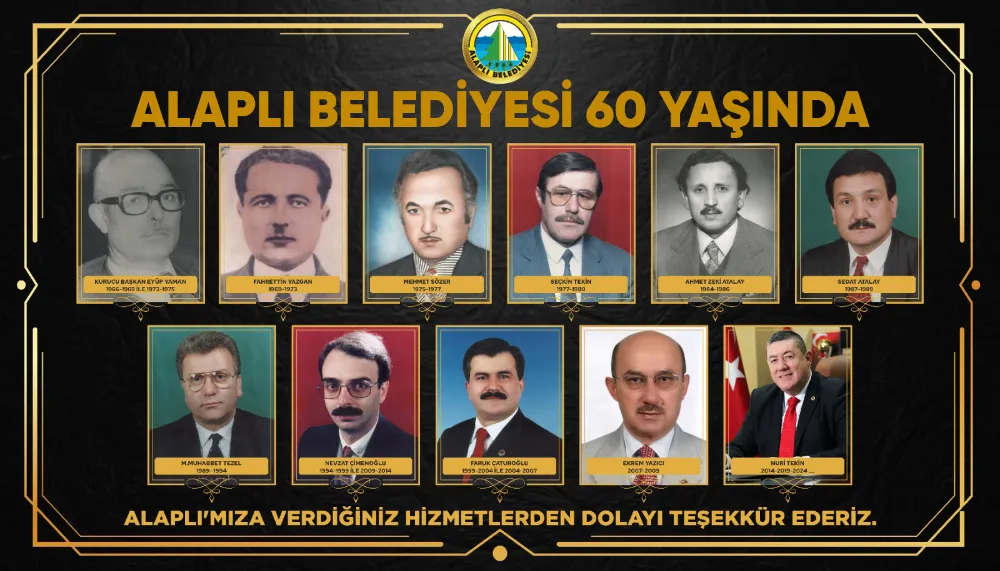 15 Mayıs 1966’da yapılan seçimlerin ardından rahmetli Eyüp Yaman, Alaplı’nın kurucu belediye başkanı olduğunu hatırlatan Başkan Tekin, geçmişten günümüze görev yapmış tüm başkanları da anarak, “Fahrettin Yazgan, Mehmet Sözer, Seçkin Tekin, Ahmet Zeki Atalay, Sedat Atalay, Muhabbet Tezel, Nevzat Çimenoğlu, Faruk Çaturoğlu ve Ekrem Yazıcı başkanlarımız, Alaplı’ya hizmet etme sorumluluğunu büyük bir özveriyle taşımış; her biri bu kentin hafızasında kalıcı izler bırakmıştır. İlçemize emek veren tüm belediye başkanlarımıza şükranlarımı sunuyor, ebediyete irtihal eden başkanlarımıza Allah’tan rahmet diliyorum” ifadelerini kullandı.