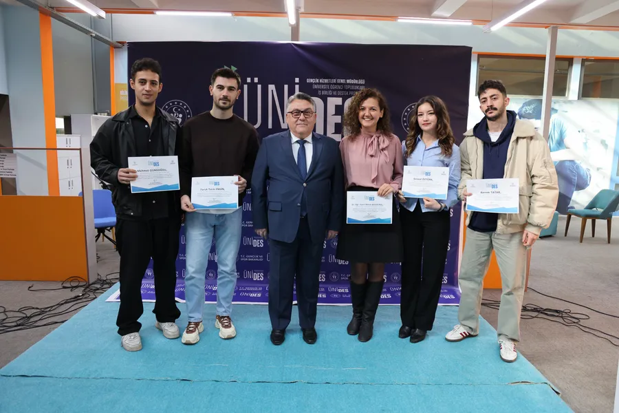 ÜNİDES Programı kapsamında proje geliştirerek başarıyla uygulayan üniversite kulüp ve topluluklarına yönelik düzenlenen sertifika teslim töreninde; projelerde görev alan öğrenci topluluk üyeleri ile danışman akademisyenlere sertifikaları Prof. Dr. İsmail Hakkı Özölçer ile Zonguldak Gençlik ve Spor İl Müdürü Halil Hacı tarafından takdim edildi.