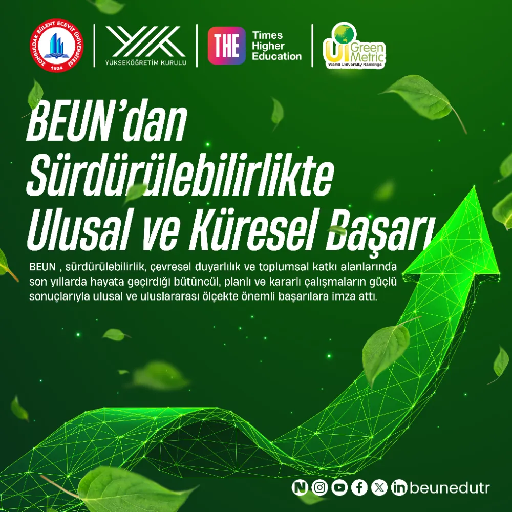 Zonguldak Bülent Ecevit Üniversitesi (BEUN), sürdürülebilirlik, çevresel duyarlılık ve toplumsal katkı alanlarında son yıllarda hayata geçirdiği bütüncül, planlı ve kararlı çalışmaların güçlü sonuçlarıyla ulusal ve uluslararası ölçekte önemli başarılara imza attı.