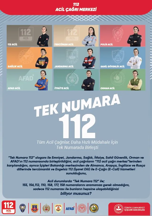 ve AFAD gibi acil yardım hizmeti veren kurumları ilgilendiren konularda 7/24 acil çağrı