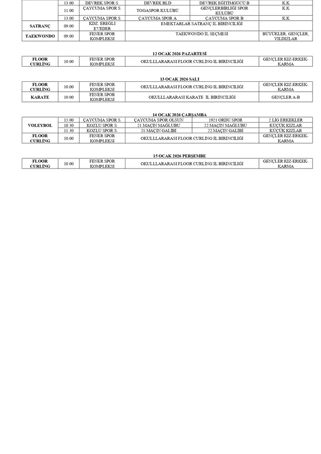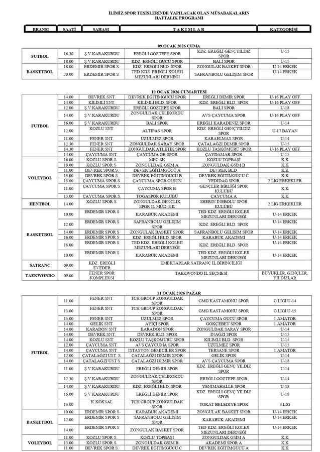 İLİMİZ SPOR TESİSLERİNDE YAPILACAK OLAN MÜSABAKALARIN HAFTALIK PROGRAMI