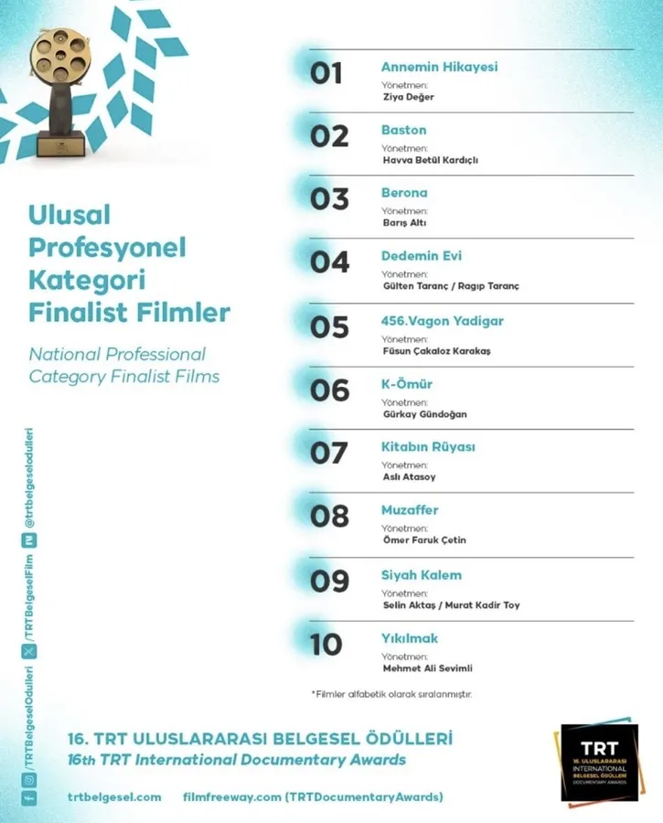 TRT'nin uluslarası düzenlediği ve dünyanın birçok ülkesinden yönetmenin katıldığı belgesel yarışmasında Genel Maden İşçileri Sendikası'nın yapımını üstlendiği 'K-ÖMÜR' belgeseli, Ulusal katogeride ilk 10 film arasına kalarak finale yükseldi.