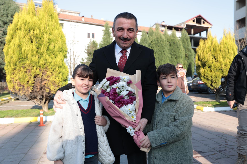 Vali Osman Hacıbektaşoğlu, Gökçebey ilçemizde geleceğimizin güvencesi, sevgili çocuklarımız tarafından çiçeklerle karşılandı.